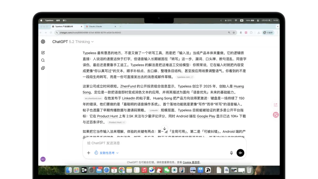 上面的這些文字,以及下面的部分文字,我們?nèi)讨粍恿俗炱ぷ樱笓] Typeless、ChatGPT、Claude 等工具完成,沒有手打一個字。